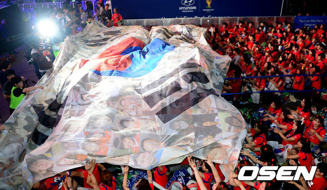 대한민국과 벨기에의 2014 FIFA 월드컵 H조 조별예선이 열린 27일 오전 서울 삼성동 코엑스 사거리 영동대로에서 길거리 응원전이 펼쳐졌다.