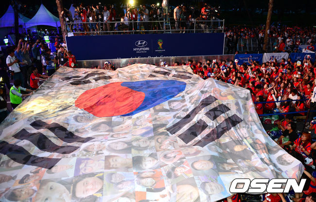 대한민국과 벨기에의 2014 FIFA 월드컵 H조 조별예선이 열린 27일 오전 서울 삼성동 코엑스 사거리 영동대로에서 길거리 응원전이 펼쳐졌다.
