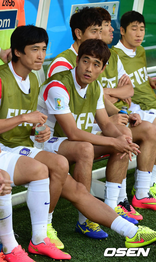홍명보 감독이 이끄는 축구대표팀이 27일 오전(한국시간) 브라질 상파울루의 아레나 코린티아스에서 열릴 벨기에와의 조별리그 H조 마지막 경기, 박주영이 벤치에서 대기하고 있다.