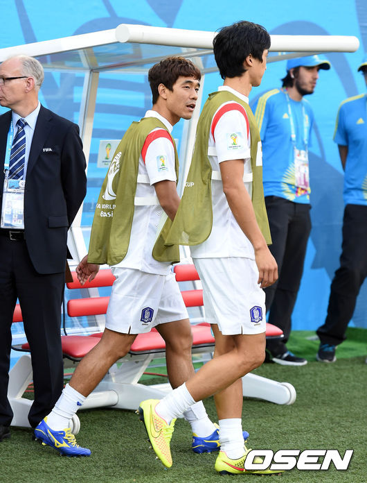 홍명보 감독이 이끄는 축구대표팀이 27일 오전(한국시간) 브라질 상파울루의 아레나 코린티아스에서 열릴 벨기에와의 조별리그 H조 마지막 경기 벤치 멤버로 시작한 박주영이 벤치로 가고 있다.