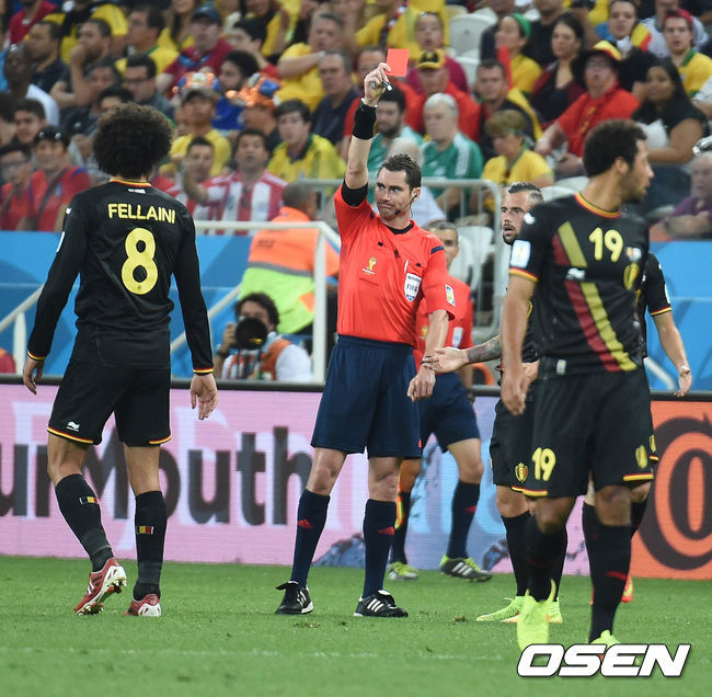 전반 44분 벨기에 스테번 드푸르는 김신욱의 장딴지를 밟아 즉각 퇴장을 명령받았다. 수적우세를 앞세운 한국은 후반전 승리를 노릴 수 있게 됐다.