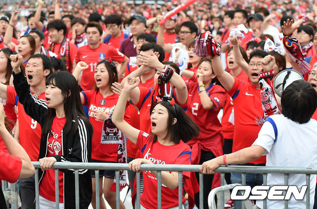 대한민국과 벨기에의 2014 FIFA 월드컵 H조 조별예선이 열린 27일 오전 서울 광화문광장에서 길거리 응원전이 펼쳐졌다.