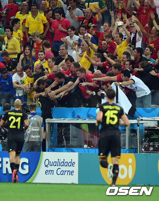 후반 벨기에 얀 베르통언이 선취골을 넣고 자국 팬들과 기뻐하고 있다
