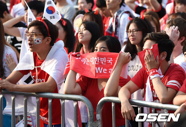 거리 응원을 마친 축구팬들이 아쉬운 표정을 짓고 있다./sunday@osen.co.kr