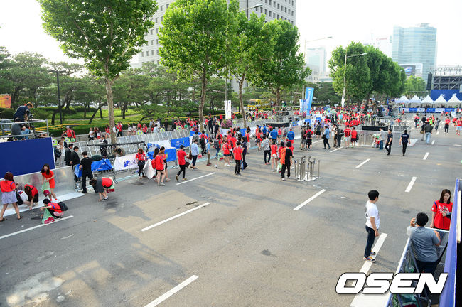 거리 응원을 마친 축구팬들이 뒷정리를 하고 거리를 빠져나가고 있다. / baik@osen.co.kr