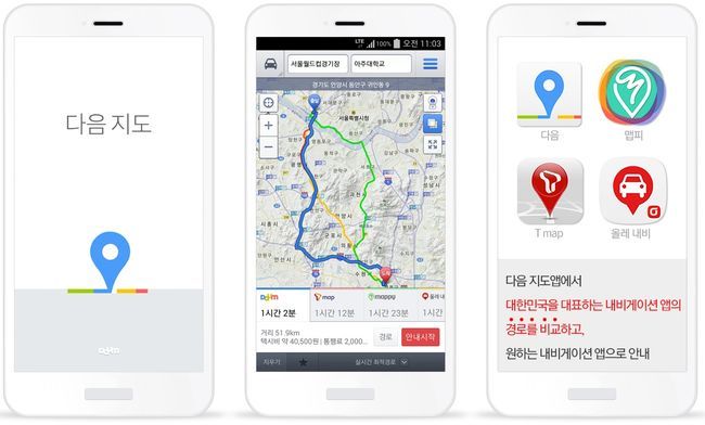 다음은 자동차 길찾기 경로비교 서비스에 앞서 지난 4월 현대엠엔소프트와 손잡고 별도의 지도 다운로드 및 업데이트 필요없이 클라우드를 통해 최신 3D지도와 실시간 교통정보 등을 전송받아 최적의 경로를 안내하는 스마트폰 기반의 풀(Full) 클라우드 내비게이션 앱 '맵피 위드 다음(mappy with Daum)'을 선보인 바 있다.