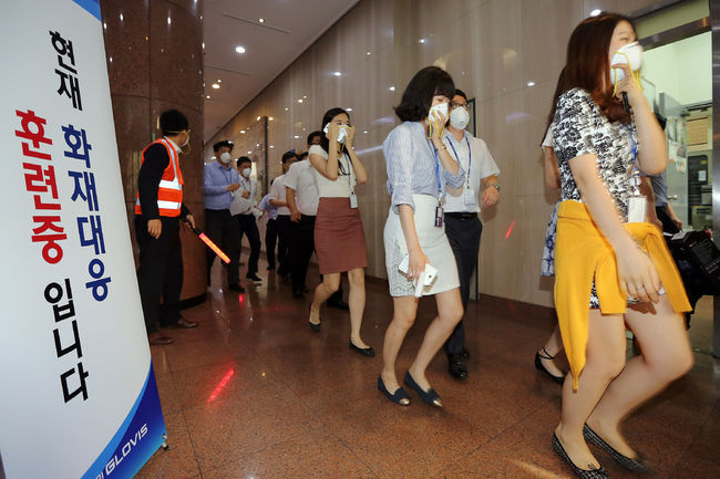 이번 훈련은 서울 강남 한복판의 대형 건물에서 화재가 발생한 것을 가정하고 이에 대응하는 능력을 키우기 위한 대피훈련으로 진행됐다.