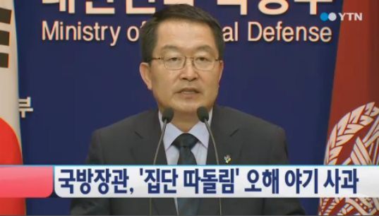 김관진 국방부 장관이 총기난사 사건의 원인이 '집단 따돌림'이 동기가 된 것처럼 오해를 불러온 점에 대해 사과했다.