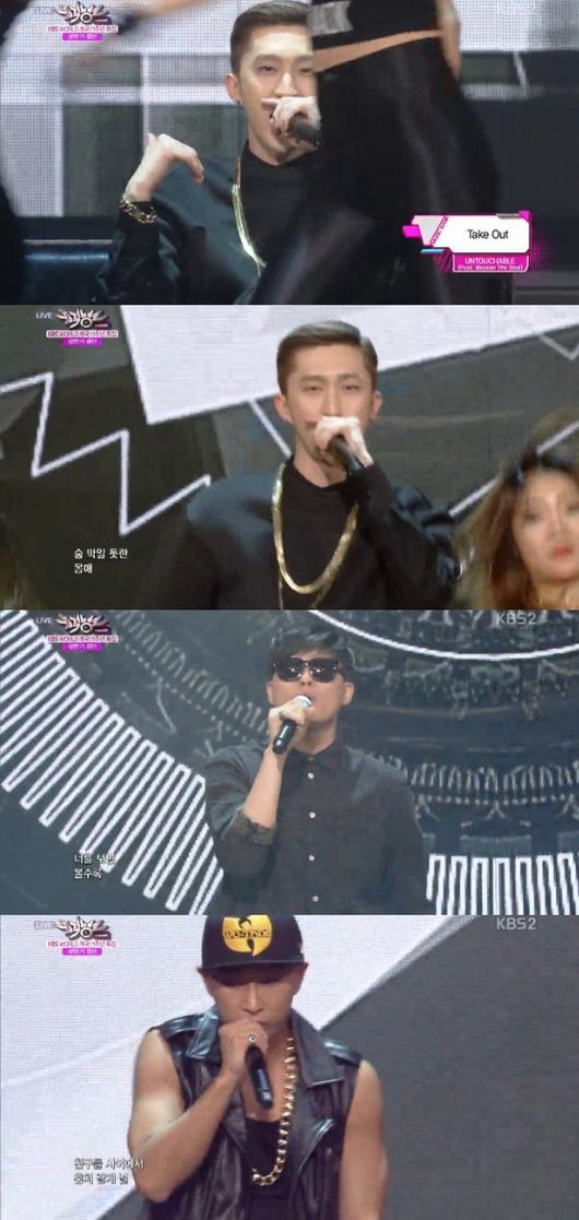언터쳐블은 27일 방송된 KBS 2TV 음악프로그램 ‘뮤직뱅크’ 상반기 특집에서 신곡 ‘테이크 아웃(Take out)’ 컴백 무대를 펼쳤다.