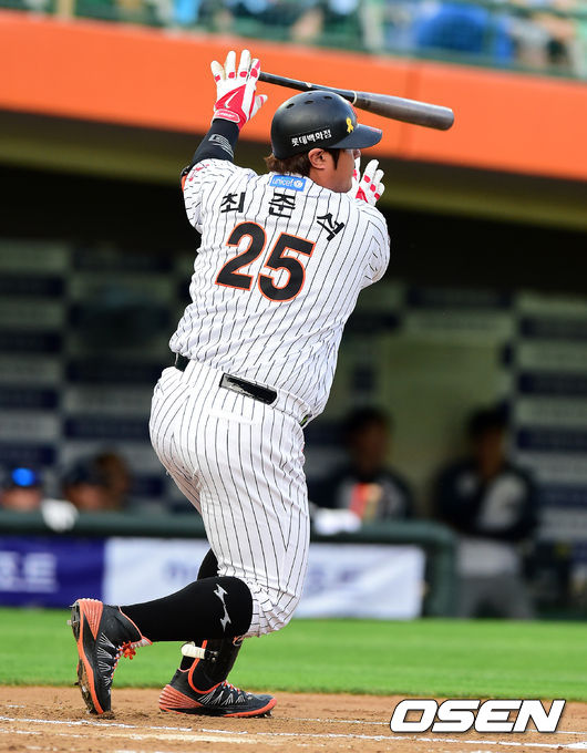 1회말 1사 2,3루에서 롯데 최준석이 선제 1타점 좌전 적시타를 날리고 있다.