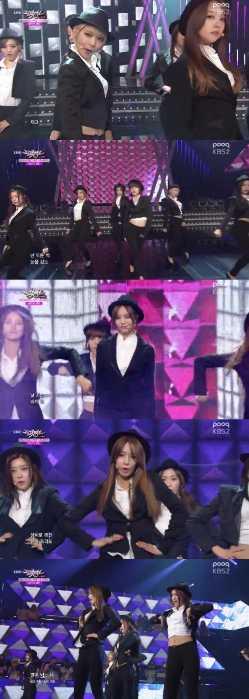 걸스데이, AOA, 베스티는 27일 오후 방송된 KBS 2TV 음악 프로그램 '뮤직뱅크'의 2014 상반기 결산 특집에서 소녀시대의 ‘미스터미스터’로 색다른 무대를 선보였다.