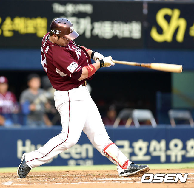 4회초 무사에서 넥센 박병호가 좌월 솔로 홈런을 치고 있다.