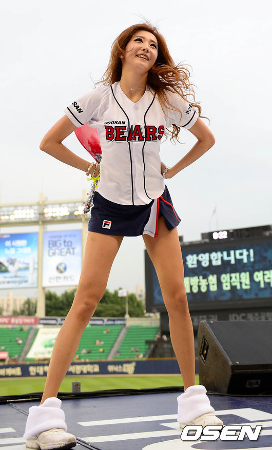 27일 오후 서울 잠실야구장에서 '2014 한국야쿠르트 세븐 프로야구' 두산 베어스와 넥센 히어로즈의 경기, 두산 치어리더가 응원을 하고 잇다.