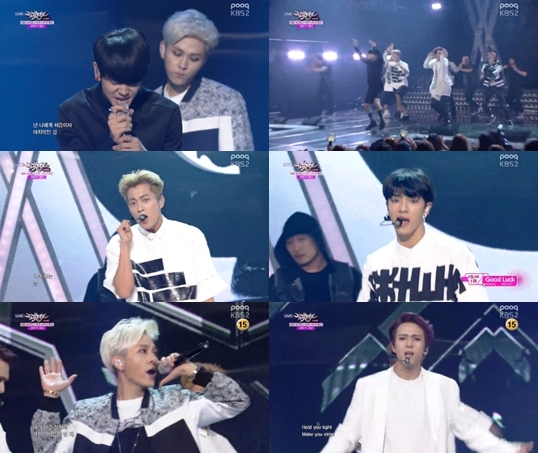 비스트는 27일 오후 방송된 KBS 2TV 음악 프로그램 '뮤직뱅크' 2014 상반기 결산 특집에서 타이틀 곡 ‘굿럭(Good Luck)’을 열창하며 환상적인 무대를 가졌다.