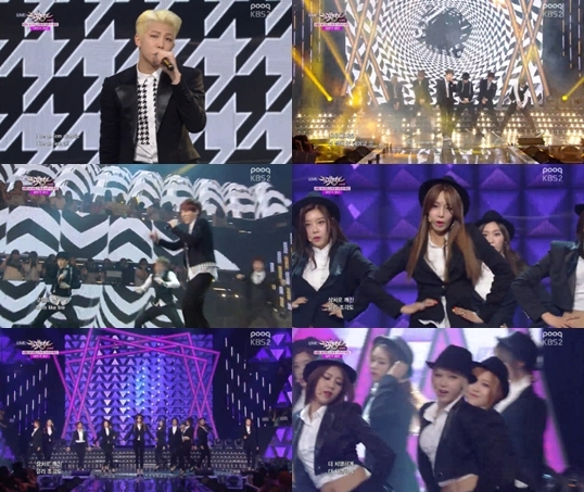 걸그룹 걸스데이, AOA, 베스티는 소녀시대의 '미스터미스터' 무대를 완벽재연 했다. 이들은 중절모에 시크함이 물씬 풍기는 블랙 정장을 입고 등장해 '미스터미스터' 안무를 완벽하게 소화해내며 소녀시대의 무대를 완벽하게 재연했다. 평소 보여주던 섹시하고 깜찍한 모습을 버리고 보이시한 매력을 뽐내 눈길을 끌었다.