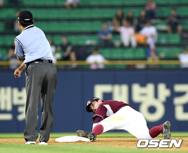 5회초 1사 1루에서 넥센 유한준 타석때 1루주자 서건창이 도루에 실패하고 있다.