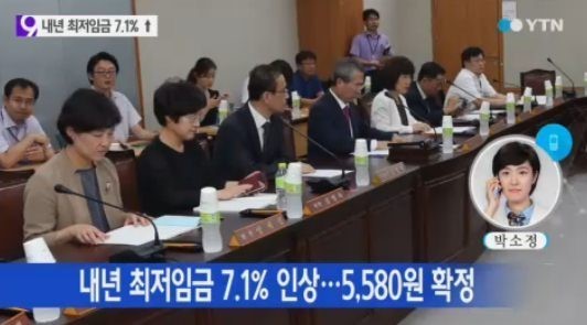 당초 노동계는 올해보다 26,8% 오른 6700원으로 해야한다고 주장했고, 사용자 측은 올릴 수 없다는 입장을 고수했으나, 밤샘 회의 끝에 최저임금위원회는 인상한 시한인 29일 내에 인상안을 의결했다.