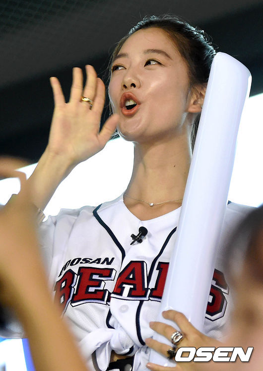경기장을 찾은 배우 클라라가 열띤 응원을 펼치고 있다.