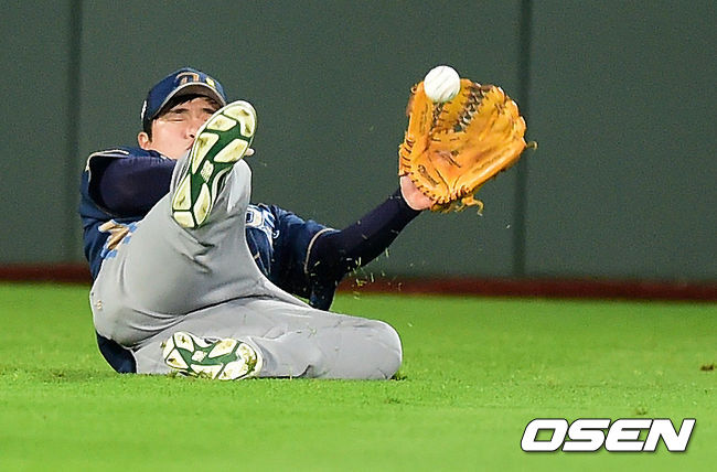 6회말 2사에서 NC 권희동이 롯데 박종윤의 타구를 놓치고 있다. 박종윤은 3루까지 진루.