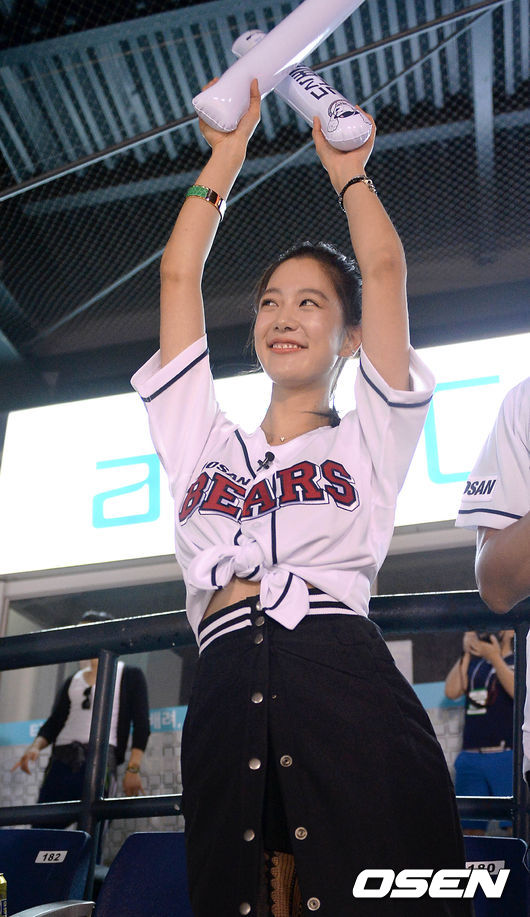 경기장을 찾은 배우 클라라가 열띤 응원을 펼치고 있다.