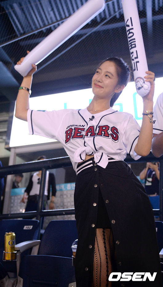 경기장을 찾은 배우 클라라가 열띤 응원을 펼치고 있다.