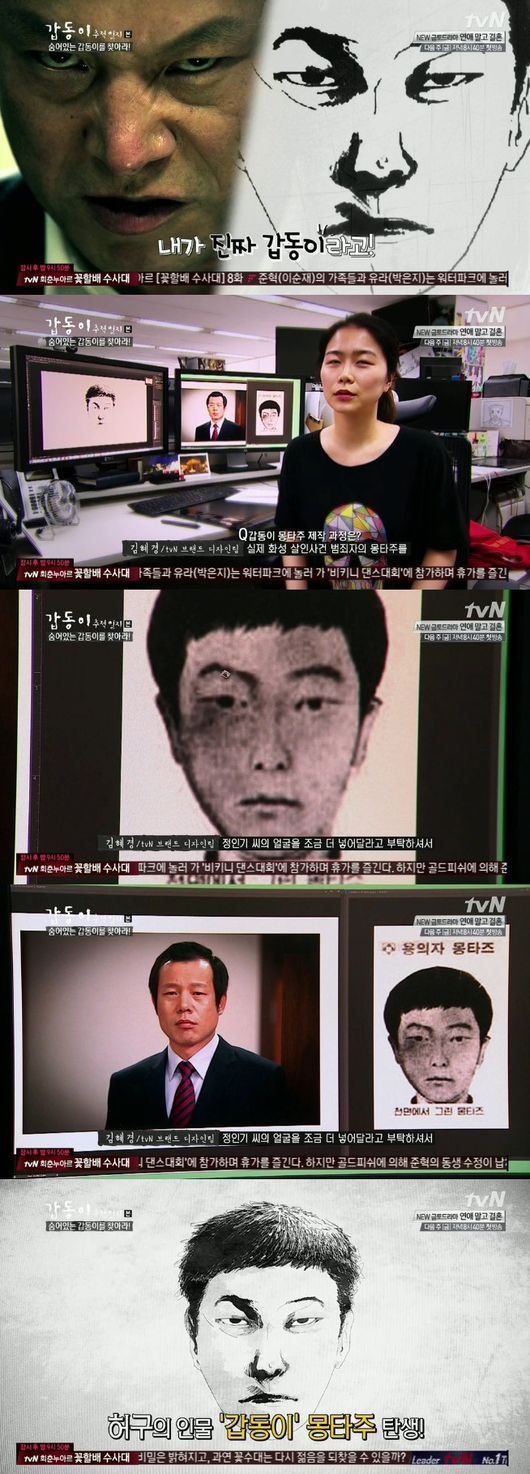 27일 방송된 tvN 스페셜 프로그램 ‘갑동이 추적일지’는 극중에서 용의자를 찾는 단서인 몽타주의 제작 과정이 공개됐다.