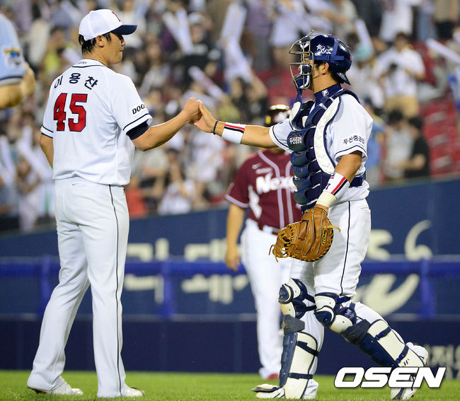 경기후 두산 이용찬과 양의지가 승리의 기쁨을 나누고 있다./greenfield@osen.co.kr