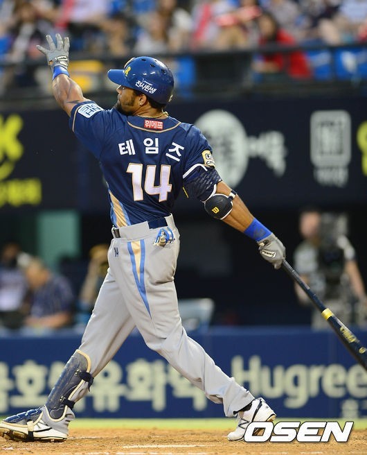 테임즈는 27일 사직구장에서 벌어진 롯데 자이언츠전에 1루수 4번 타자로 선발 출전했다. 테임즈는 3-8로 끌려가던 8회초 1사 2루에서 롯데 좌완 이명우를 상대로 가운데 담장을 넘어가는 비거리 125m짜리 홈런을 터트렸다. 올 시즌 20호 홈런. 외국인타자 가운데 처음으로 20홈런 고지를 밟은 테임즈다.