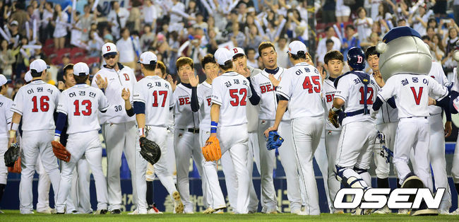 경기후 두산베어스 선수들이 승리의 기쁨을 나누고 있다./greenfield@osen.co.kr