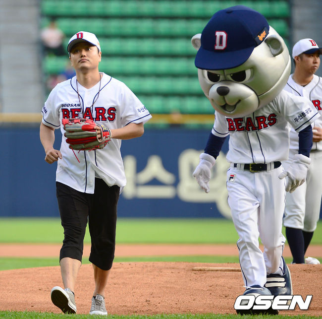 경기전 시구를 맡은 배우 김민교가 트레이드 마크인 춤을 추고 있다./greenfield@osen.co.kr