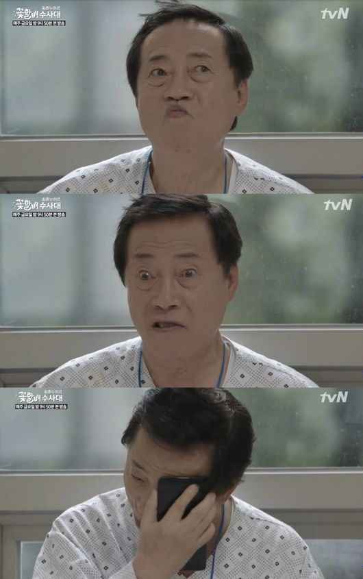 27일 오후 방송된 tvN 금토드라마 ‘꽃할배수사대’ 8회에서는 한원빈(변희봉 분)이 골드 피시 멤버를 수사하기 위해 정신병동에 입원하는 모습이 전파를 탔다.