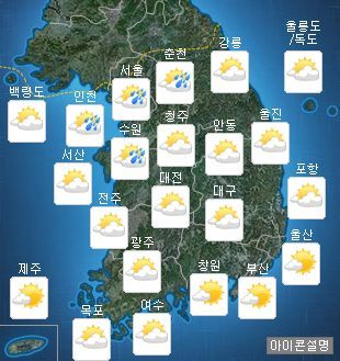 28일 기상청에 따르면 전국이 가끔 구름많겠고, 서울.경기도는 아침에, 중부지방과 경상남북도 일부는 낮부터 저녁 사이에 소나기(강수확률 60%)가 오는 곳이 있겠다.