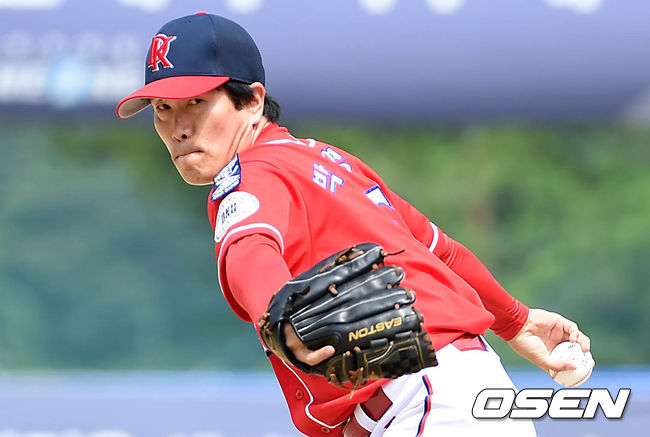 1회초 무사에서 단국베어스 선발투수 박영남이 힘차게 공을 던지고 있다.