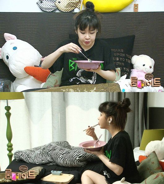 '룸메이트' 박봄이 빵에 이어 떡만둣국을 폭풍 흡입하는 모습을 선보여 웃음을 자아낸다.