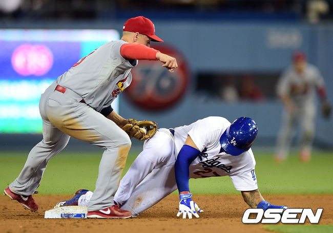 6회말 2사 1루 다저스 맷 켐프가 2루 도를 시도하고 아웃당하고 있다./youngrae@osen.co.kr