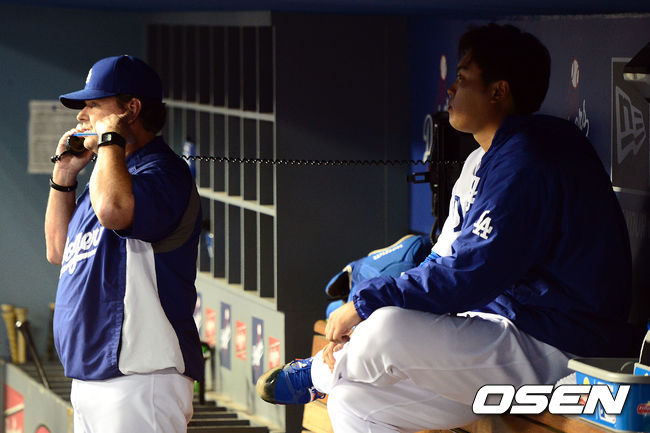 다저스 허니컷 코치가 불펜에 전화를 하고 있다./youngrae@osen.co.kr