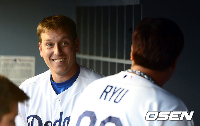 다저스 A.J 엘리스와 류현진이 이야기를 나누고 있다./youngrae@osen.co.kr