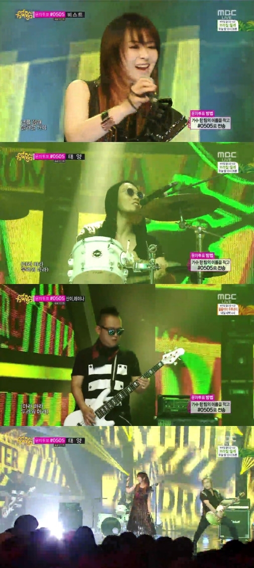 체리필터는 28일 오후 방송된 MBC 음악 프로그램 '쇼! 음악중심'에 출연해 신곡 ‘안드로메다’를 열창했다.