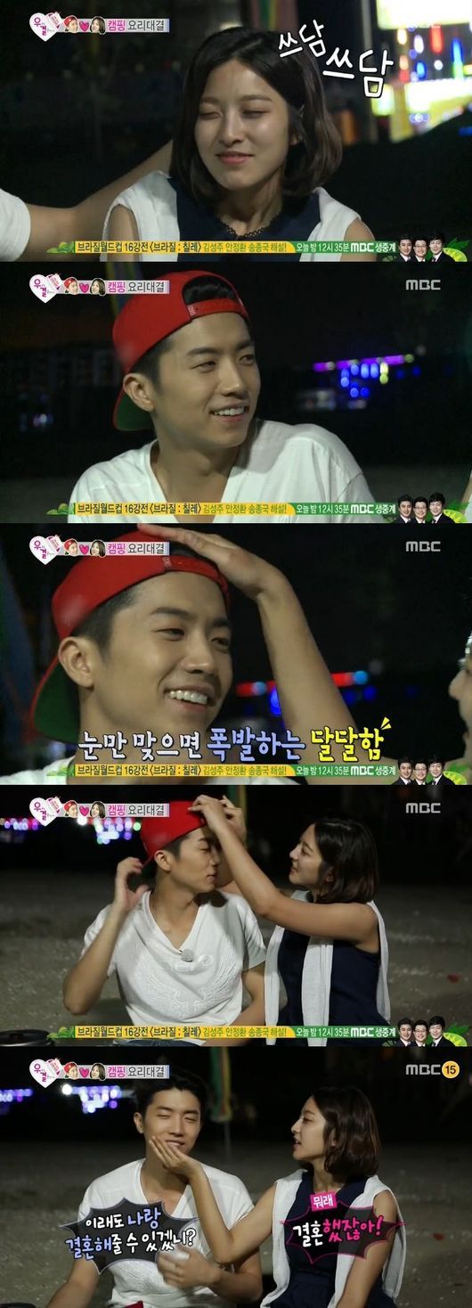 우영과 박세영은 28일 오후 방송된 MBC 예능프로그램 '우리 결혼했어요 시즌4'(이하 '우결')에서 요리를 무사히 마친 후 해변에 나와 서로의 머리를 쓰다듬으며 행복함을 표현했다.