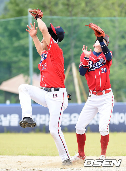 4회초 단국베어스 강동헌이 잘생긴 KUBIZ 이종민의 타구를 잡아내고 있다.