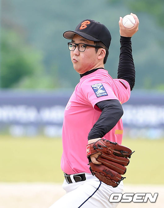 1회말 잘생긴 KUBIZ 선발투수 박형규가 힘차게 공을 던지고 있다.