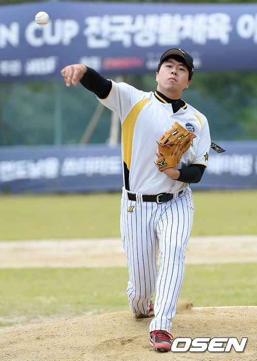 1회초 Rockstar 선발투수 김민국이 힘차게 공을 던지고 있다.