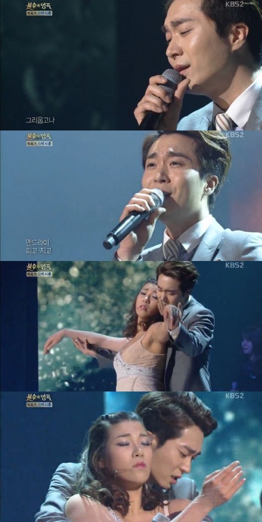 '비 내리는 고모령'을 선곡한 조성모는 감미로운 노래를 이어가다가 후반에 탱고 톤으로 변주된 곡에서 감정을 이끌어올리며 댄서들과 함께 애절한 무대를 완성했다.