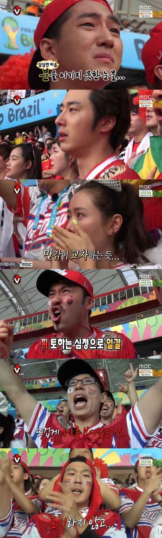 28일 오후 방송된 MBC 예능프로그램 '무한도전'에서는 브라질 현지에서 한국 대 알제리 전을 관전하는 응원단의 모습이 그려졌다.