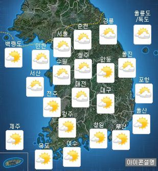 28일 기상청에 따르면 29일아침 최저기온은 16도에서 21도로 오늘보다 낮겠고, 낮 최고기온은 22도에서 31도로 오늘과 비슷하거나 조금 낮겠다.