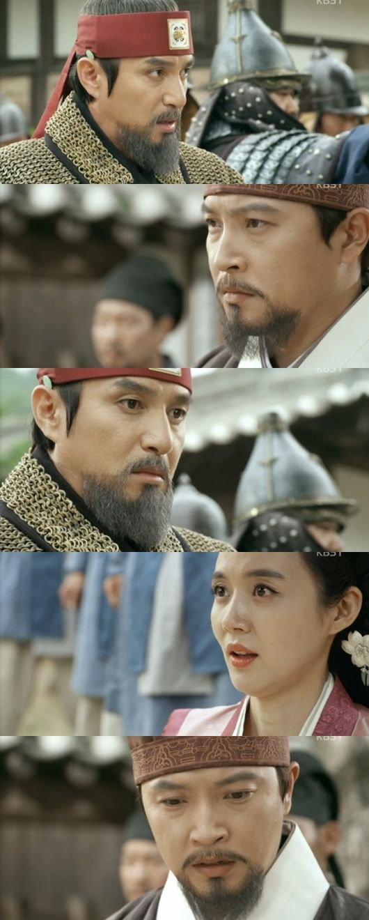 정도전의 서슬 퍼런 기세에 사병들은 칼을 놓고 뒷걸음쳤고, 민씨(고나은 분)는 뜻을 굽히지 않는 이방원의 앞을 막아서며 "내가 사병 명부를 내어주겠다"고 말했다.