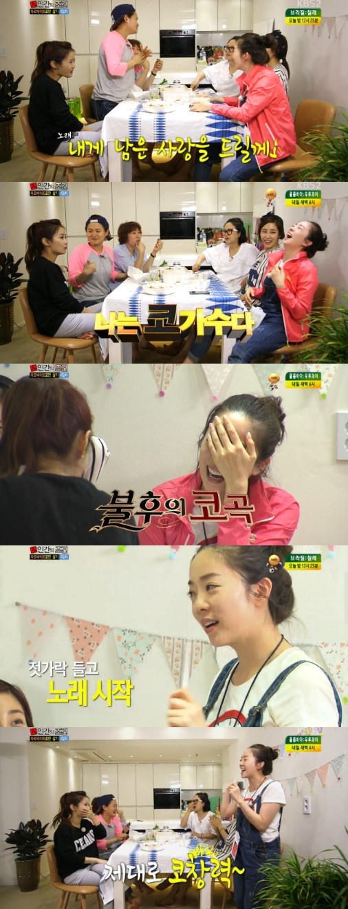 쑥스러워하던 박은영은 부끄러운듯 주섬주섬 일어나더니 결국 ‘내게 남은 사랑을 드릴께요’를 코창력으로 열창해 보는 이들에게 큰 웃음을 선사했다.