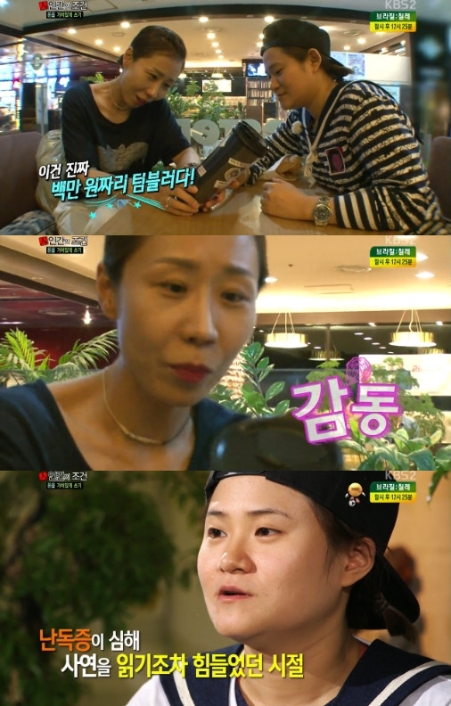 ‘인간의 조건’ 김신영이 정선희에게 자신이 4박 5일 동안 열심히 일했던 모습이 담긴 텀블러를 선물하며 감사함을 전했다.