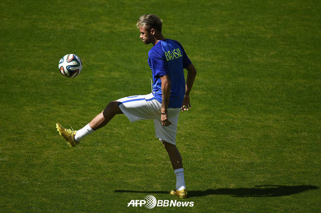 [OSEN=사진팀]29일(한국시각) 브라질 벨루오리존치에 위치한 에스타디오 미네이랑에서 열린 2014 브라질월드컵 16강전 첫 경기 브라질과 칠레의 경기전 브라질 네이마르가 몸을 풀고 있다