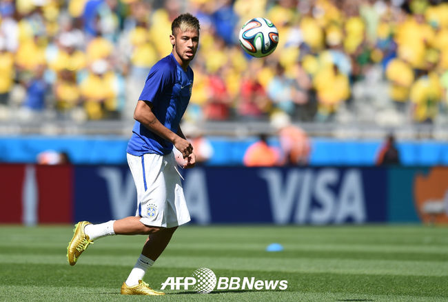 [OSEN=사진팀]29일(한국시각) 브라질 벨루오리존치에 위치한 에스타디오 미네이랑에서 열린 2014 브라질월드컵 16강전 첫 경기 브라질과 칠레의 경기전 브라질 네이마르가 몸을 풀고 있다